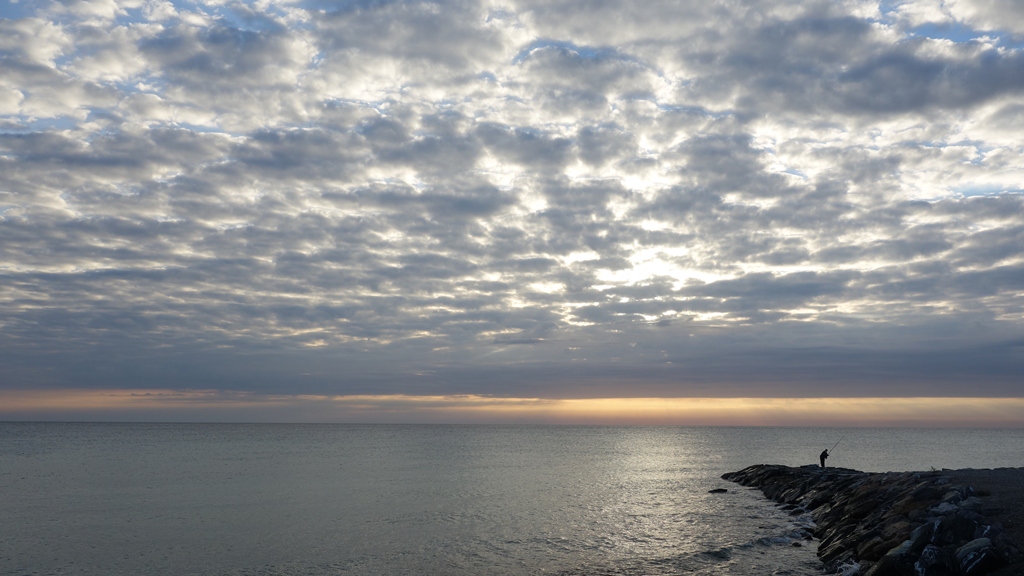 una buona foto...l'ampia porzione di mare a sx potrebbe dare l'impressione di uno sbilanciamento...ma la presenza fondamentale del piccolo pescatore...da un senso allo spazio...all'infinito....