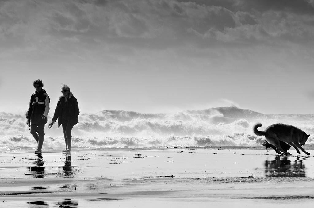 Bello questo scatto, ottima la posizione molto bassa che ci fa sentire immersi nella mareggiata, riguardo ai cani ti hanno già detto.