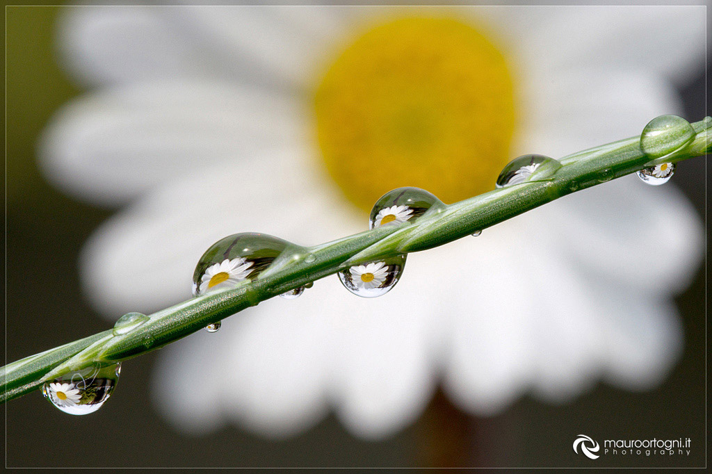personalmente trovo più semplice immortalare un'immagina in una singola goccia, riuscire a riprodurre goccie multiple con i soggetti al loro interno perfettamente a fuoco mi ha fatto perdere delle giornate intere, entrano in gioco tantissimi fattori, per primo la PDC che a f.2,8 è praticamente nulla, una piccolissima angolazione e non ci sono più i fiori all'interno delle goccioline.