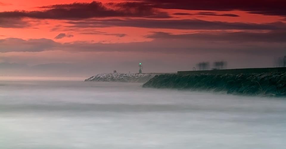 Il tempo di esposizione lungo restituisce mistero alla fotografia dove non solo la presenza umana e' alla stregua di fantasma ma anche il molo, la croce e l'immobilita' dell'acqua sono immersi in una lieve ed indefinita foschia. Forse avevi dato un po' più di spazio al bel cielo.