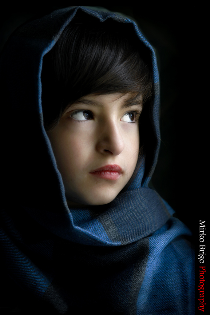 Essenziale, ottimo lo sfondo, a mio avviso azzeccatisimo anche il colore della sciarpa, forse avrei clonato i capelli in disordine sulla guancia destra.