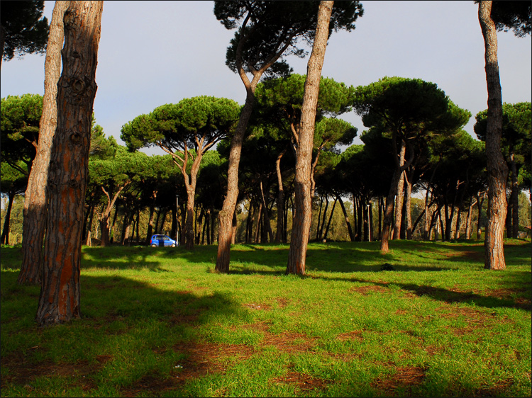 Il punto di interesse, secondo me naturalmente, è il punto di blu nel verde, per la luce non vedo niente di strano, il sole è delle prime ore del mattino, radente, pertanto erba a chiazze tra luci e ombre, semmai vedo un coloraccio nel cielo.