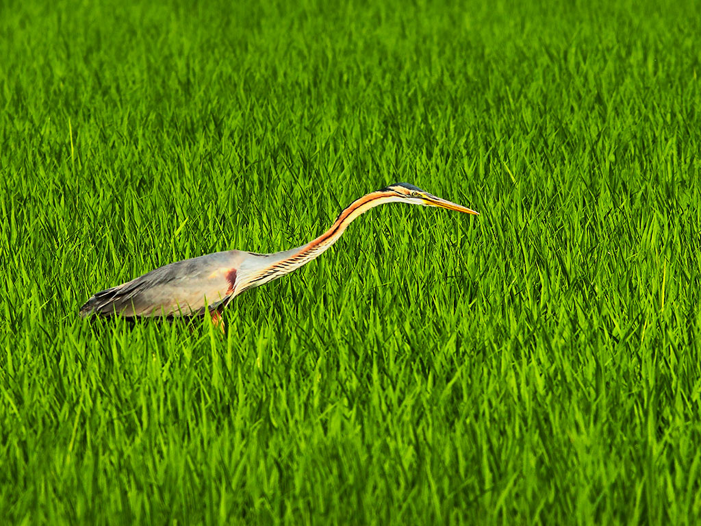 Bella Luca.Buona luce e colori. Peccato che l'airone rosso non sia rosso davvero (tranne alcune striature) , altrimenti avresti avuto il rosso e il verde complementari e una foto ancora più' bella.
