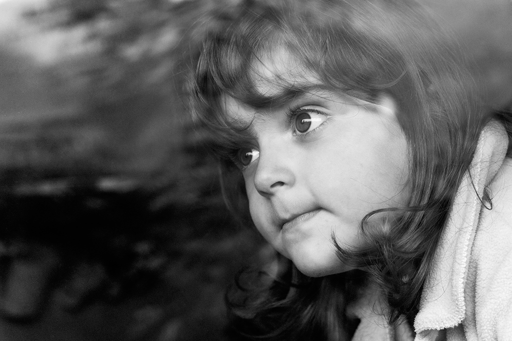 L'inquadratura è stretta ...si raccoglie sull'espressività del soggetto quasi a volerne sfiorare i pensieri, ma sa mantenersi ampia e sufficientemente sbilanciata per "accogliere" la linea di fuga dello sguardo. Interessante poi come il punto di ripresa leggermente basso riesca a dare forza alla dinamica espressiva degli occhi, ...quasi che la prospettiva bassa riesca a dare slancio e leggerezza alla linea di forza di quello sguardo di incantata meraviglia.