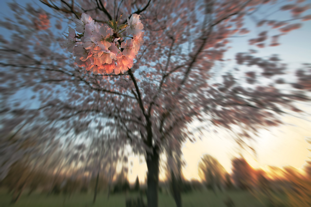 Un primavera frizzante e piena di vita,a partire dal frutto in fiore,dal suo dettaglio risoluto,da quel sole riflesso sui petali,per poi esplodere nei colori cangianti che si irradiano all'infinito.