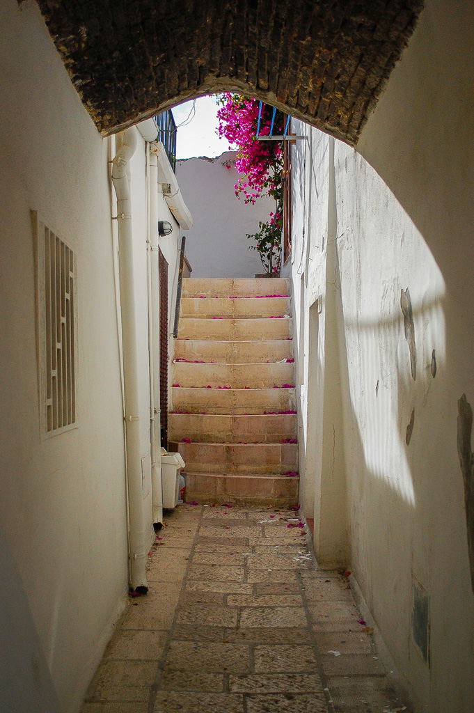 ottimi i colori di scala, pavimentazione e... soprattutto...dei petali caduti ovunque...