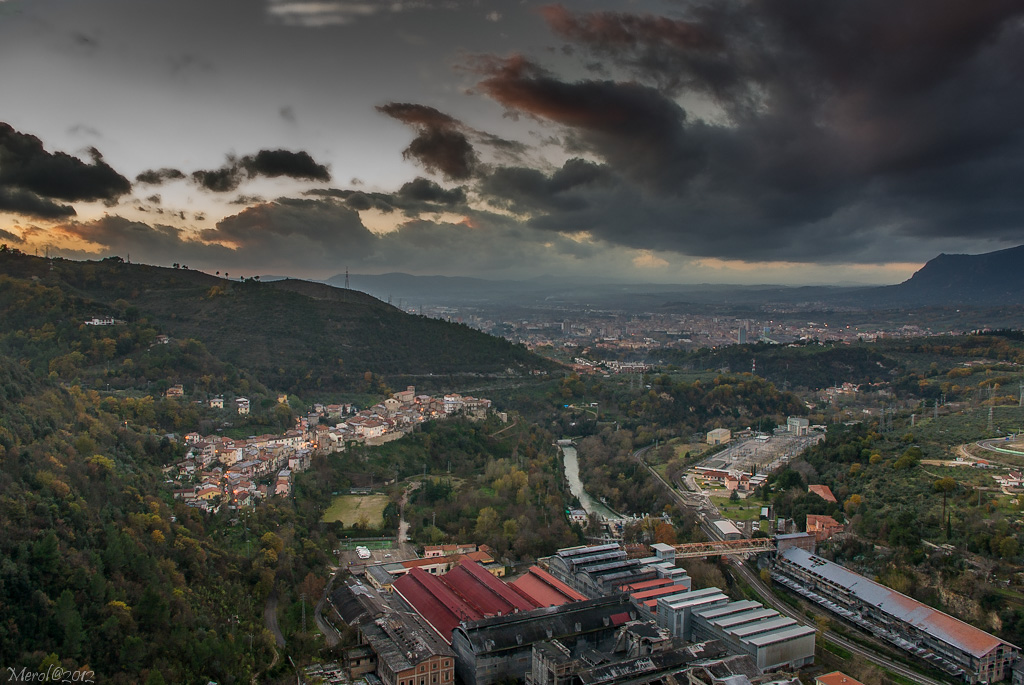un bel cielo accompagna questo variegato panorama..che va dal paese alla città..passando per l'industria...