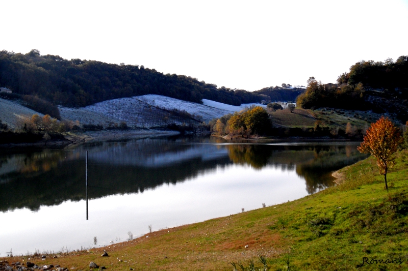 a me piace così , direi una buona interpretazione della foto a colori , dove le contrapposizioni tonali fanno la foto . Hai riprodotto almeno 2 stagioni nello stesso scatto , e tutto sommato non mi disturba il cielo quasi bianco che si contrappone molto bene allo specchio del laghetto .