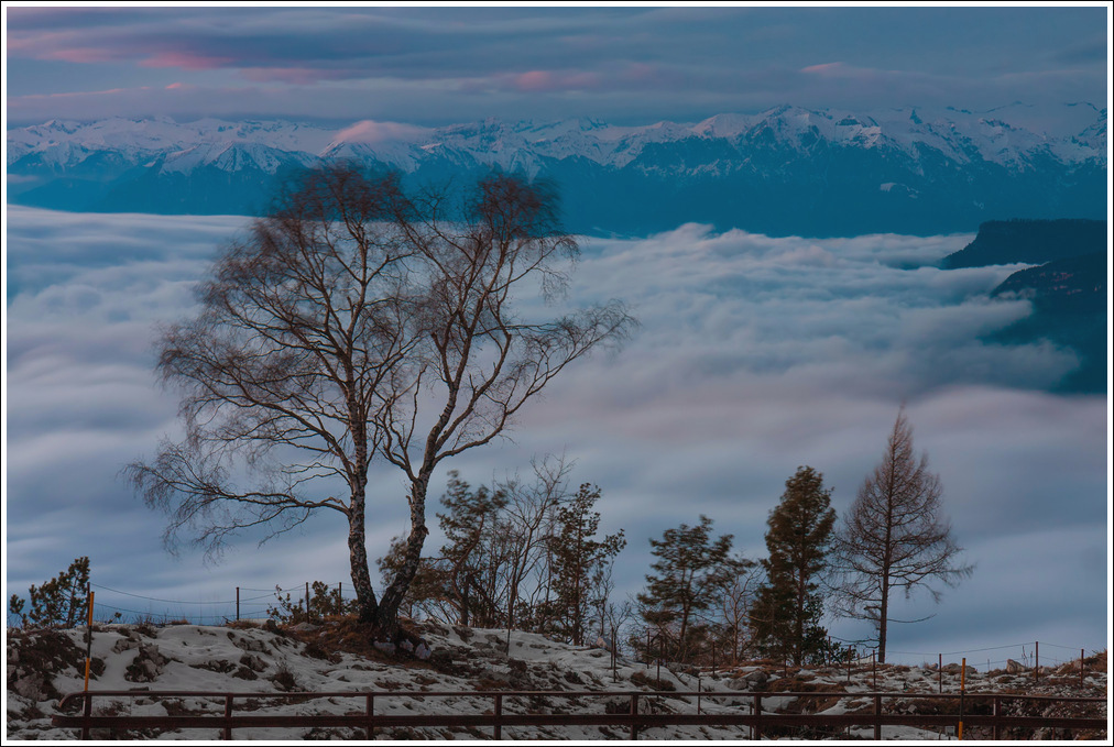 PS: appena sotto, invasa dalla nebbia, ci sta la val Lagarina e prima delle montagne il bacino del lago di Garda.