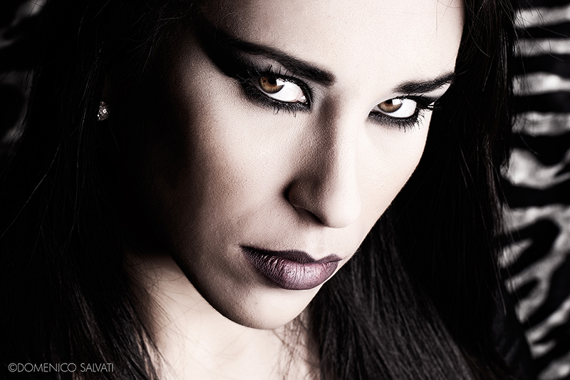 Lo sfondo zebrato si abbina bene allo sguardo felino della bella ragazza... Addirittura avrei spostato l'inquadratura leggermente più a destra.