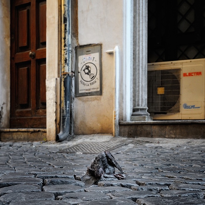Questa fotografia parla di attualità, ha un messaggio che non è legato all'istante colto, all'istante decisivo, ma racconta di una morte che la maschera affissa sul muro suggerisce destinata a tutti noi.