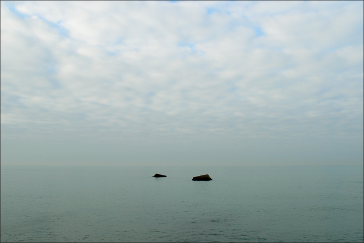 gli scogli centrali con il secondo quasi sulla linea dell'orizzonte donano una grande profondità all'immagine |