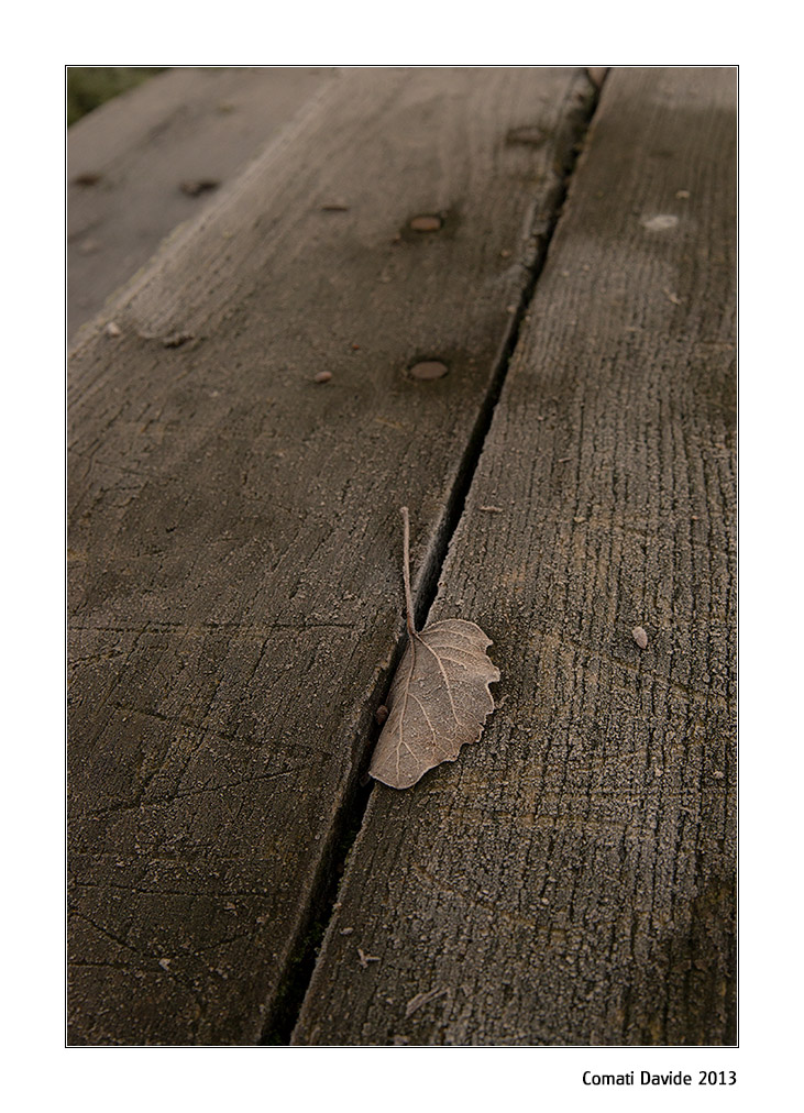 Ma dove vorrà mai andare la fogliolina. Il vento le ha giocato uno scherzo lasciandola sola, senza compagnia. Mi piace molto questa foto e, pure io avrei eliminato l'angolino. Suvvia Davide, sii audace nei tagli, il più delle volte, con buona carne al fuoco, paga.