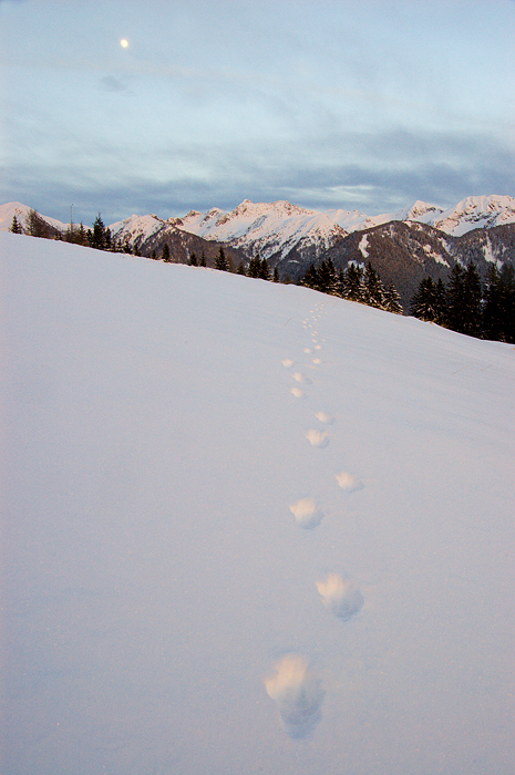 La foto è ben pensata ma il dettaglio delle orme e della neve un po' manca (o almeno io non lo vedo). Lo so che non lo sono, sei molto attento a queste cose, ma le orme mi danno come l'impressione di essere "fuori fuoco".