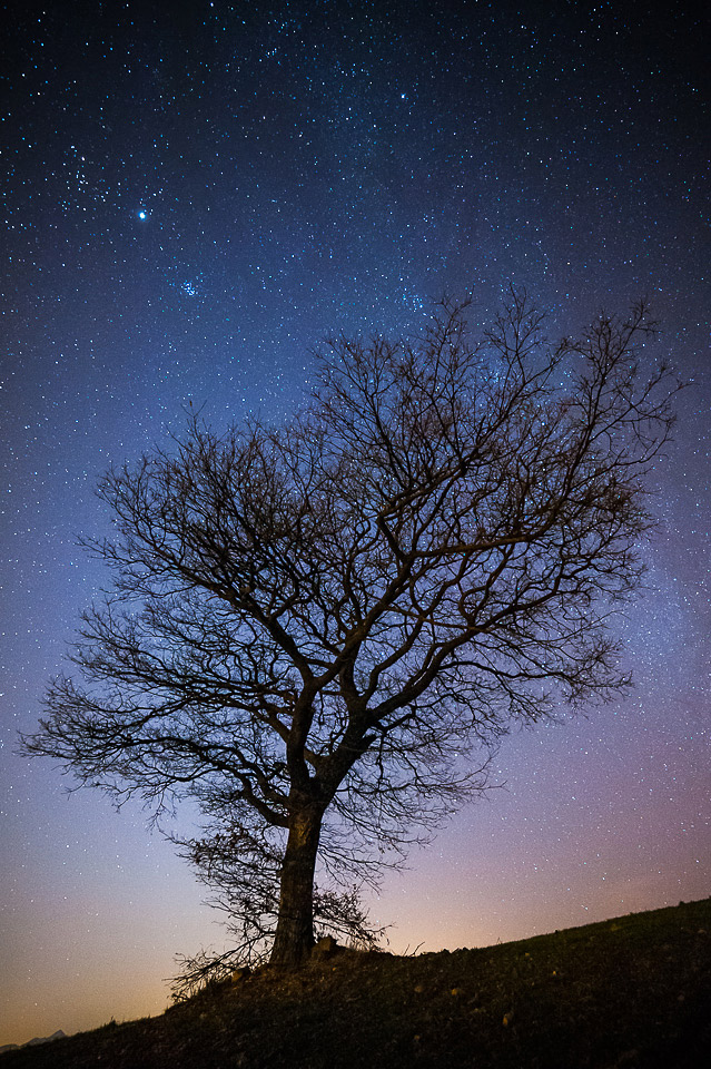 Per me gli alberi sono uno dei soggetti che prediligo in fotografia. Questa te la invidio un po'. L'albero con le sue ramificazioni e' meraviglioso. In più si staglia su un cielo stellato. Veramente il massimo! Complimenti.