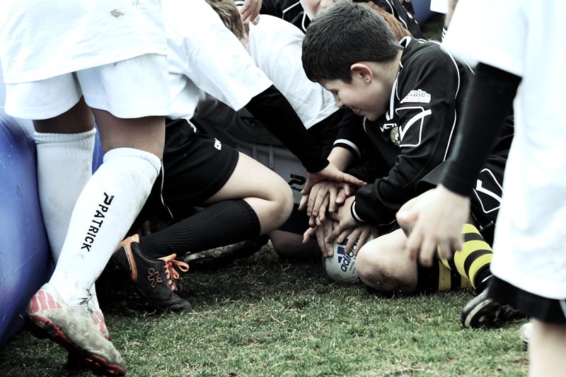 La massa delle foto soffre innanzitutto sul piano tecnico di un contrasto eccessivo, con molti bianchi sparati e frequenti neri chiusi, aspetto questo che, trattandosi di inquadrature di rado ridotte all'essenziale ma più spesso incorniciate da sfondi ingombranti e confusi, rende molto faticosa la lettura delle immagini. Meglio su tutte la 6, la 8 (ripetuta nella 13... o era un test per misurare la nostra attenzione? ), la 10 in particolare. Molto belle le espressioni dei piccoli rugbysti nella 14 (dell'inseguito in special modo) ma peccato per la distanza da cui è ripresa e per la confusione generale. Chiunque sa, però, che queste non sono proprio situazioni le più agevoli .
