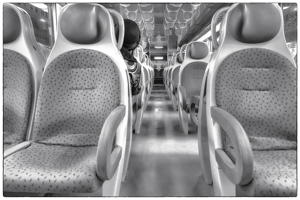 Soprattutto come esistenza del personaggio a rompere le due simmetrie , quella verticale e quella orizzontale generate dalle file di sediolini e il loro