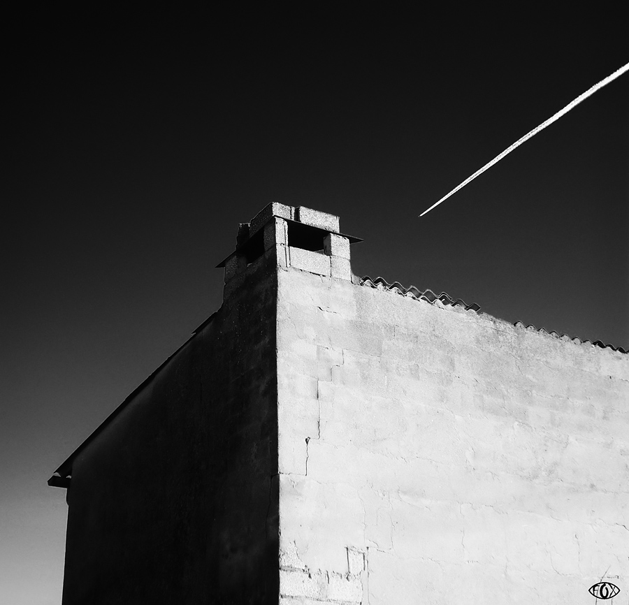 Buona la scelta del bianco e nero ma modererei leggermente i bianchi...non tanto per la parete ma per la scia dell'aereo