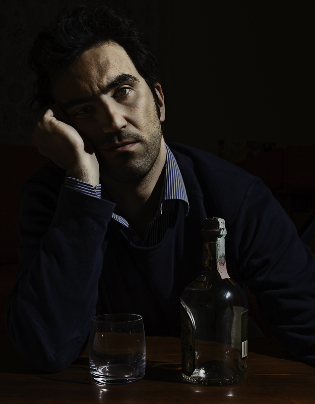 Decisamente la scena di primo piano è da rendere più credibile: l'idea iniziale era di tenere il bicchiere in mano e avere la bottiglia rovesciata con del whisky versato (anche se così rischierò di essere picchiato dalla padrona di casa ).