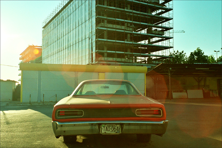 bellissimi i colori e soprattutto il flare che, a mio gusto, conferisce sempre un certo dinamismo anche ad una foto molto statica come questa. Non mi piace molto l'inquadratura. Avrei centrato un pò più verticalmente l'auto, lasciando un pò più di spazio sotto, sempre mantenendo il dettaglio dell'interno s'intende.