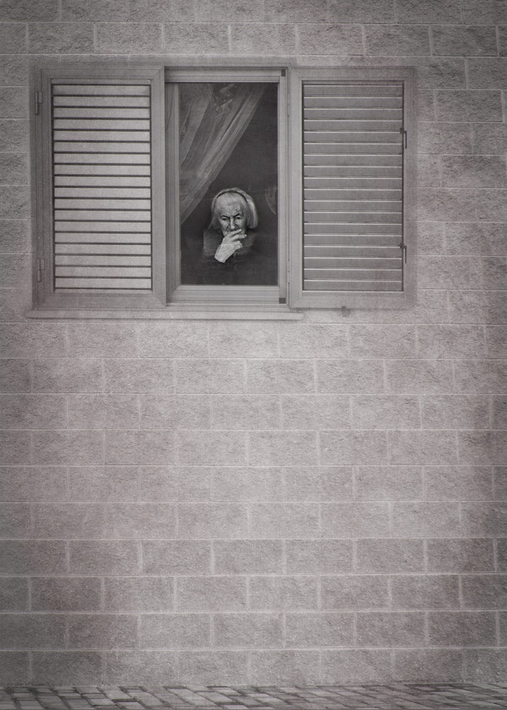Belle le tonalità...la signora sembra quasi "disegnata" nella finestra.