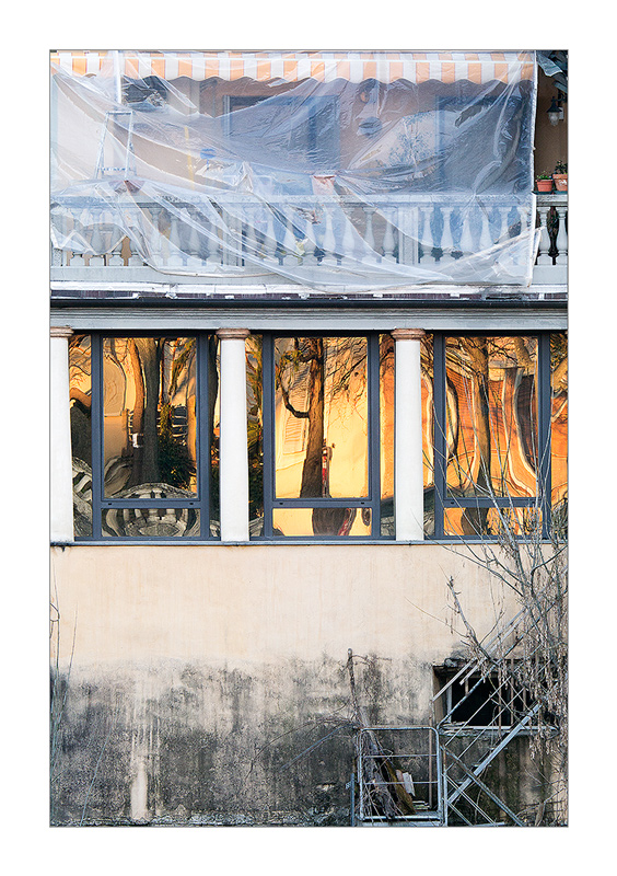 Immagine personalmente che trovo interessante per le sue immagini specchiate calde sulle finestre. Pertanto, a mio gusto, avrei tagliato l'inquadratura eliminando il balconcino avvolto nella plastica in modo da dare risalto al resto.  _________________