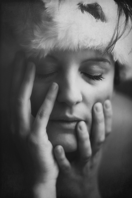Sembra uscita da un sogno, da un desiderio. Bellissima nella posa nell'atteggiamento delle dita, in quel toccarsi quasi carezze per sentirsi del sogno parte.