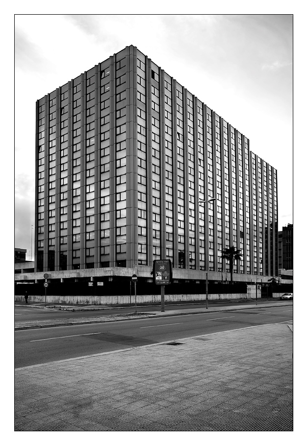 mi piace, ha un che di cattedrale nel deserto. forse vedrei il marciapiede in primo piano meno profondo, ma anche così è bello. bel b/n.