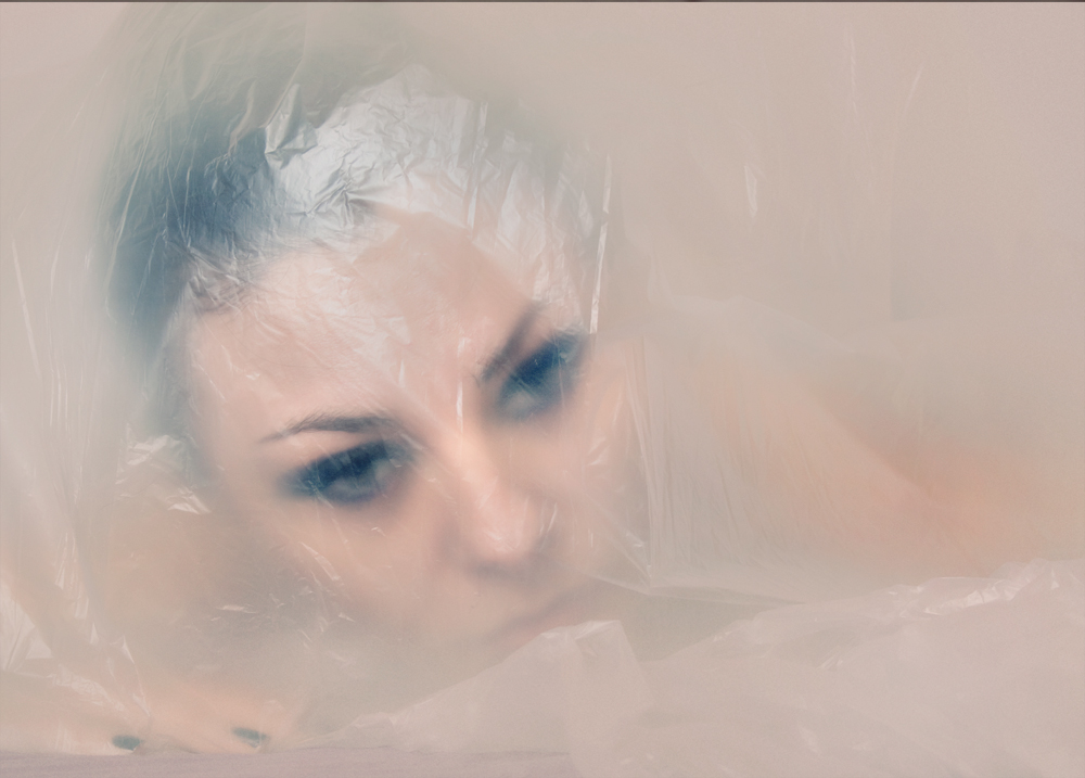 Nel terzo scatto il soggetto rompe il nylon, la sua protezione.............e trova il dolore, rappresentato dalle mani sporche di sangue.