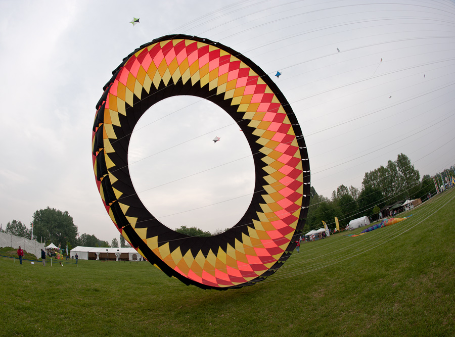 Particolare l'effetto del fish-eye che crea una discesa in realtà inesistente,sembra che l'aquilone ci venga incontro,molto belli i colori! Ok!