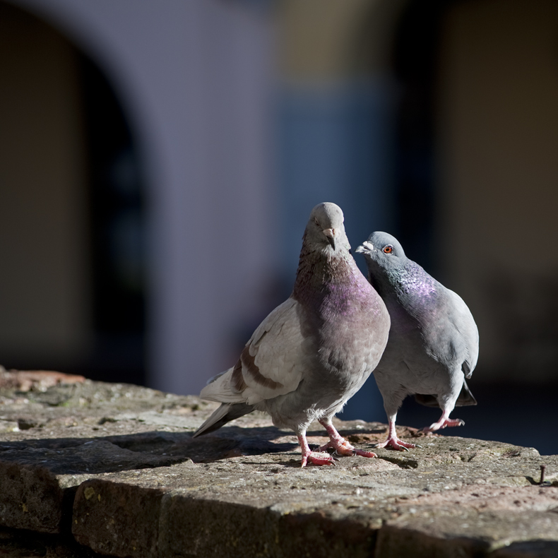 Tutt'altro che facile riuscire a connotare di espressività l'atteggiamento di due uccelli tanto poco rari o esotici come due piccioni.
