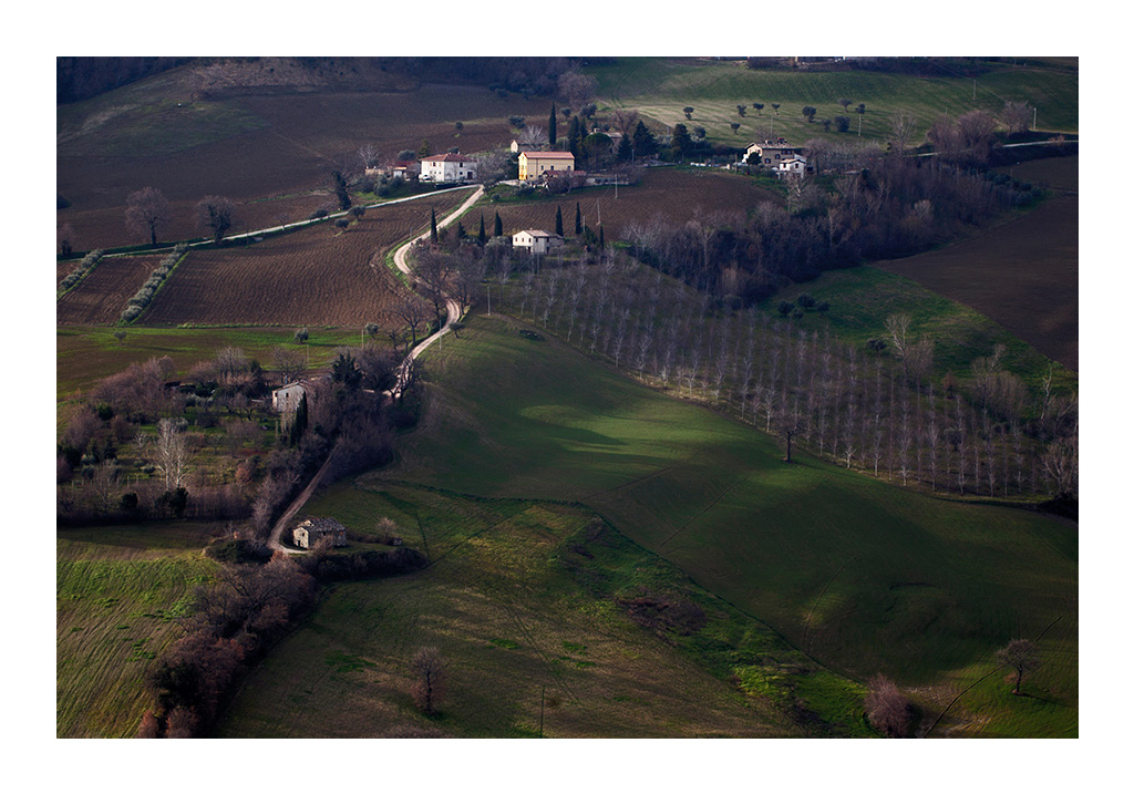 Bella foto meraviglioso contrasto tra la campagna scura e le case chiare.