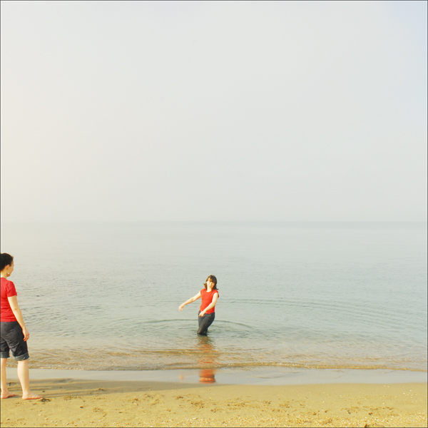 Il rosso delle magliette quando si riflette nell'acqua per poi arrivare alla sabbia della riva crea un percorso visivo rilassante.
