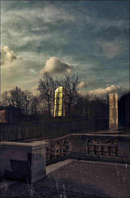 Splendide le parole di Guccini che accompagnano questa notevole immagine. Un dentro e un fuori, un riflesso e una realtà e qualche nube per chiacchierare del tempo insieme alla fantasia. Complimenti Pio, immagini sempre più dense e cariche di poesia.