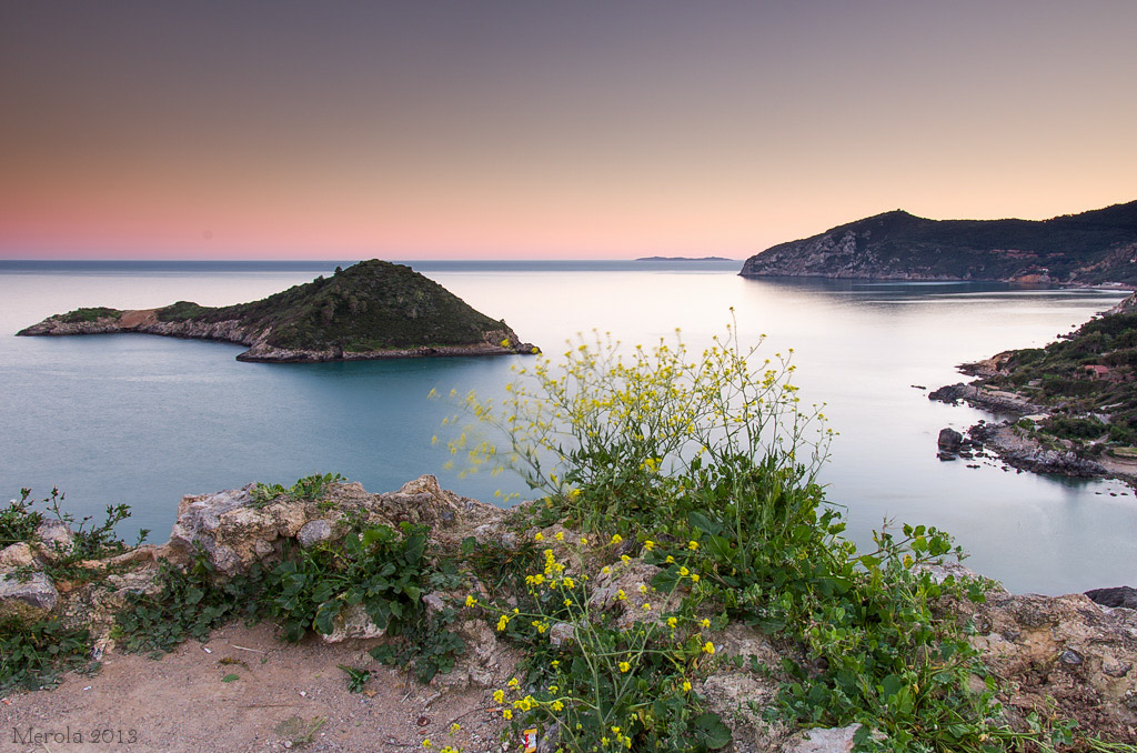 Molto bella anche questa, il formato dà maggior respiro al bel paesaggio ma forse avrei allargato a sinistra a scapito del promontorio all'estrema destra (quello con le roccette); il cielo ha delle sfumature e colori più naturali dell'altra ( più rosso e azzurro meno grigio ). Da togliere una pezzetto di carta in primo piano.