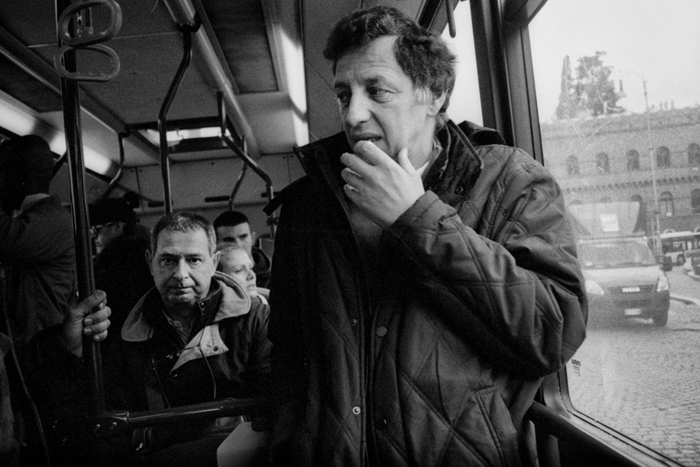 | Forse eccessiva l'apertura al "fuori" a dx, ben fermato il gesto di esitazione. Dall'occhiata assassina dell'altro signore, pare pensare "Ancora qui il rompi** con la macchina fotografica".