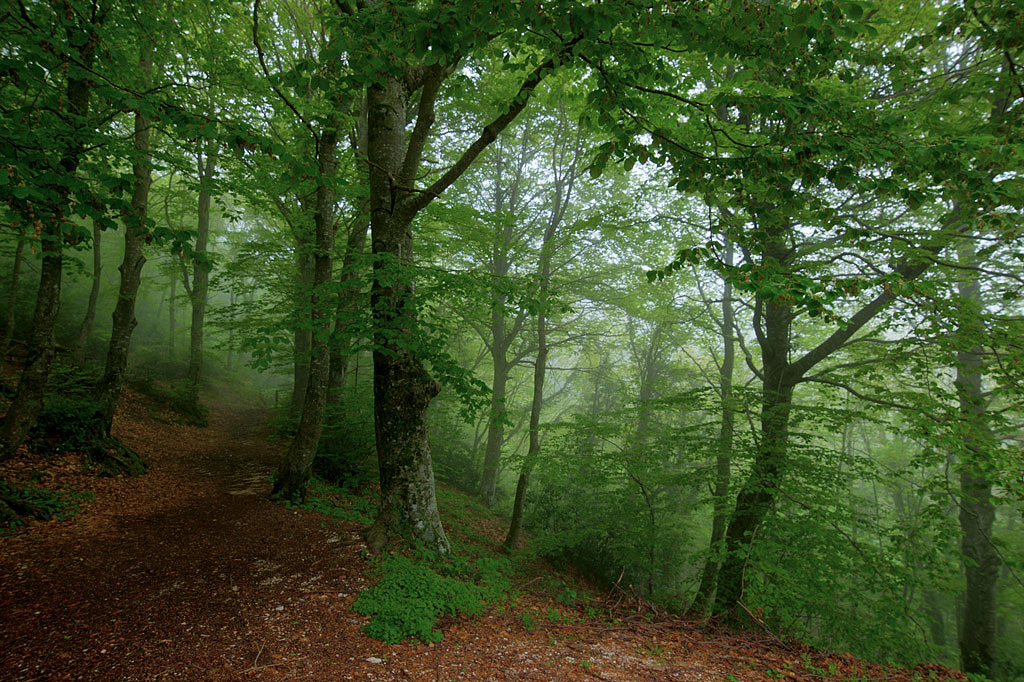 Per me nel suo genere è perfetta: cupa e luminosa insieme, nello stesso istante. Siamo immersi nel verde del sottochiome, eppure c'è luce colorata e vivida che ci avvolge. Nitida, senza impastamenti, e ben condotta anche compositivamente nella diagonale di base fatta di terra e sottobosco.