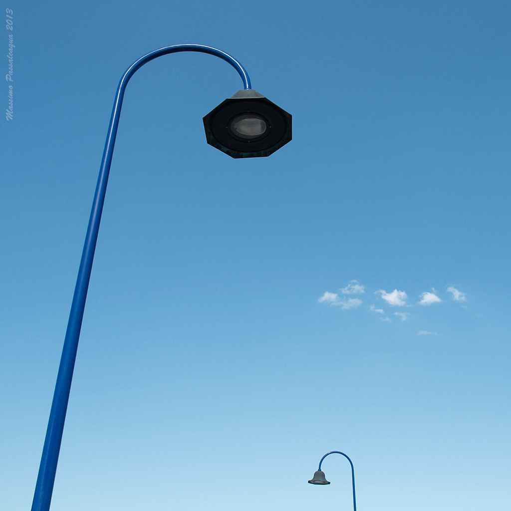 Una sola spruzzatina di nuvole in questa visione estremamente lineare, lineare nei contenuti e ancor più nell'impianto cromatico. Una sorta di dialogo a distanza. Molto bella Massimo.