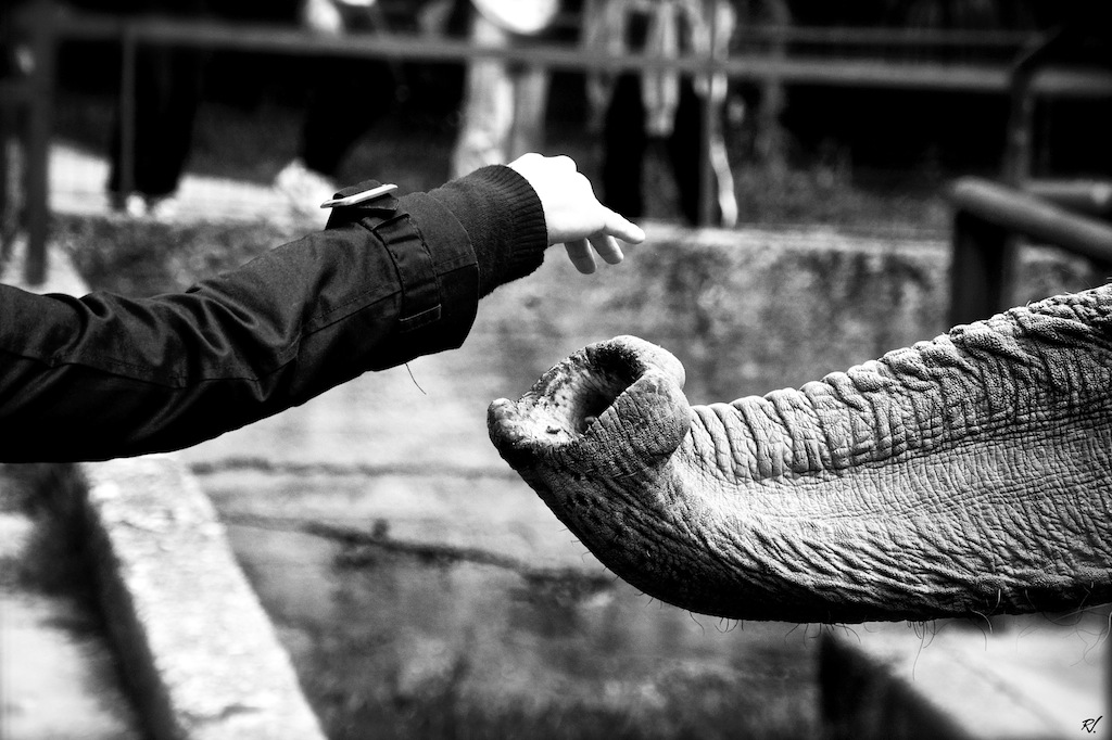 Mi piace l'instante colto: le pieghe dell'abito rendono quel braccio ancora più simile alla proboscide alla quale si allunga.