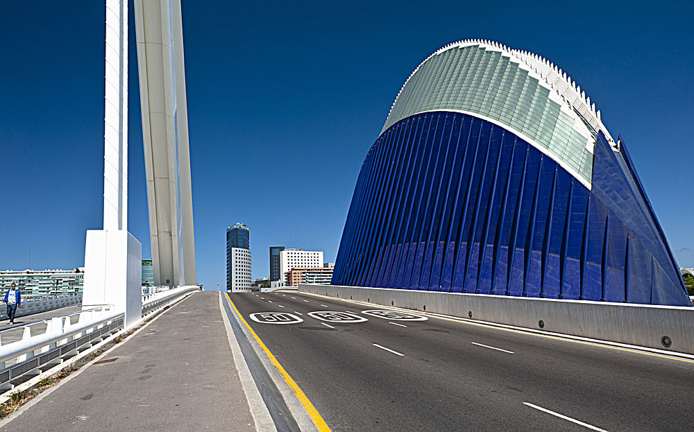 La figura umana posizionata sul margine estremo come la punta dell'edificio blu sull'estremo opposto sono i punti deboli della composizione.
