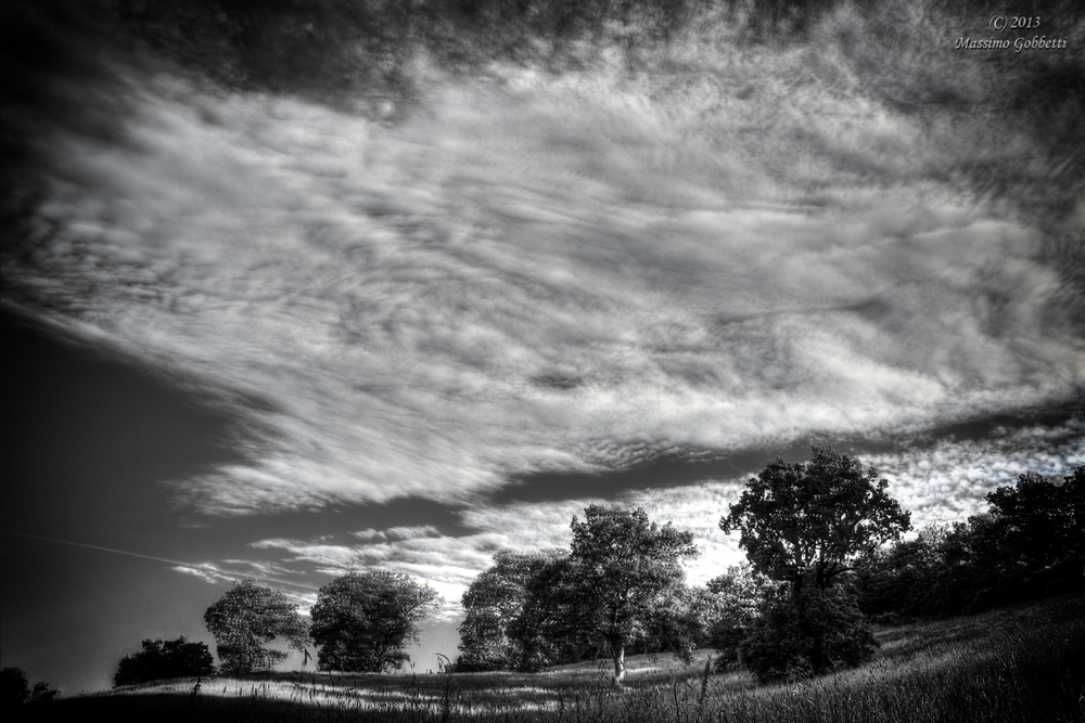 Ottimo b&n e composizione efficacissima che ha dato giusto risalto ad un cielo davvero importante. Personalmente, avrei dato un pelino di piede in più