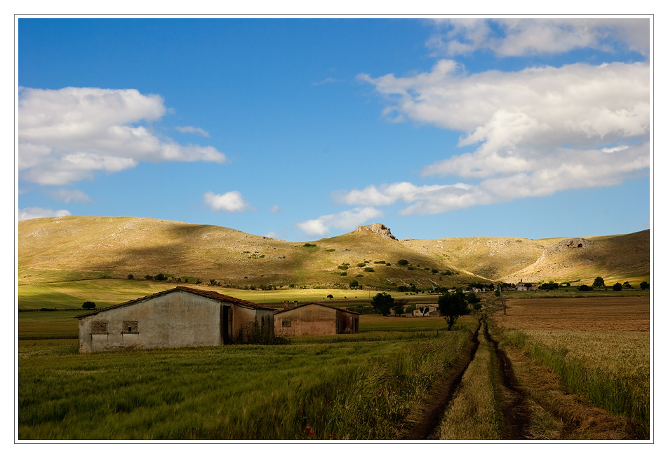 Molto piacevole la composizione, apprezzo soprattutto la parte alta con un bel cielo di un azzurro naturale, come tuo solito, e le colline molto ben delineate nei chiaroscuri tra le ombre; la parte bassa a sinistra risulta un poco mossa non so se per il vento.