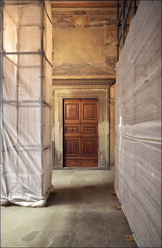 Mauroq(è propio la luce,quella luce ad avermi attratto;il cortile del Palazzo Vecchio di Firenze riceve luce diffusa da fuori e di sopra,come un enorme soft box,addolcendo ombre e contrasti.Alcuni punti di illuminazione artificiale e il colore delle pitture a secco delle lunette laterali fanno il resto indorando il tutto)