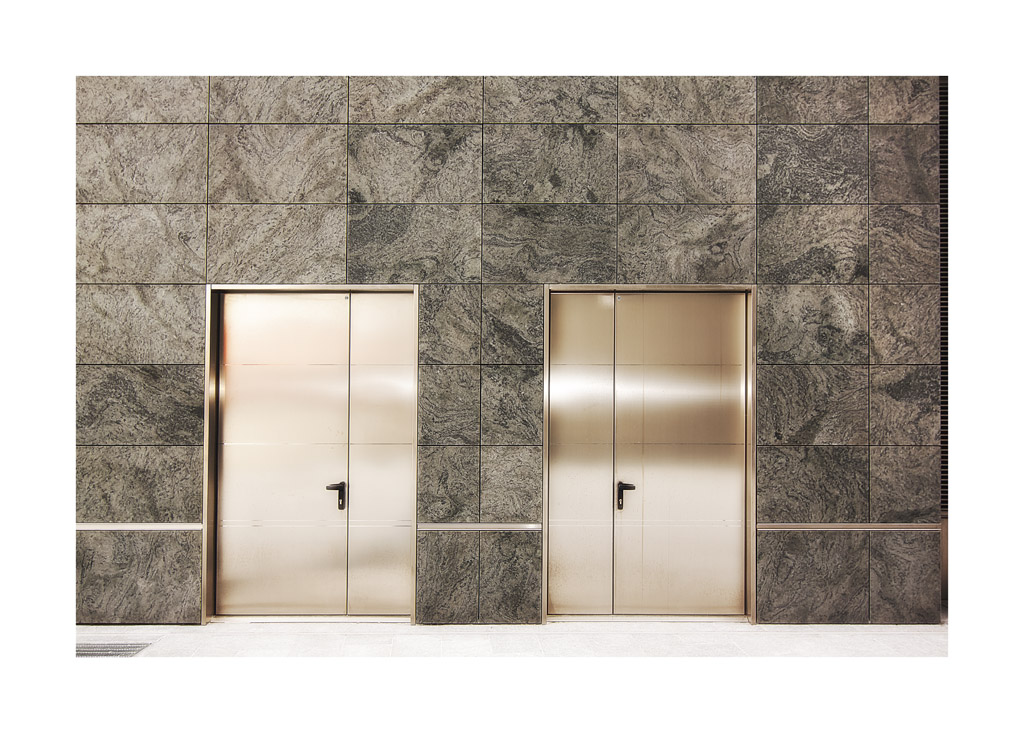 Ma è uno scatto dal sapore architetturale puro ed essenziale, dove sono riprese due porte e parte del muro, tutto in maniera asettica e rigorosa, tutto perfettamente frontale. Rimane un leggerissimo spiraglio sulla parte destra, dove quelle linee piccolissime orizzontali richiamano quelle di tutta la parete..