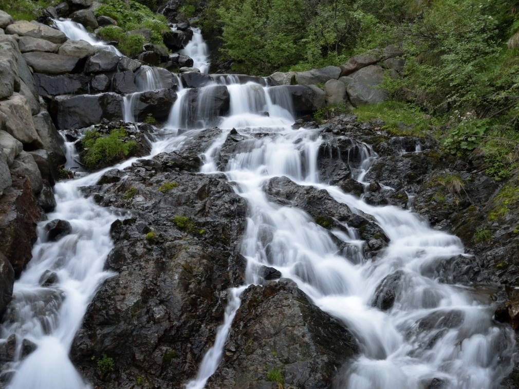 Cascatella alpina su rocce vulcaniche verso il lago di Erdemolo in alta Val dei Mochèni