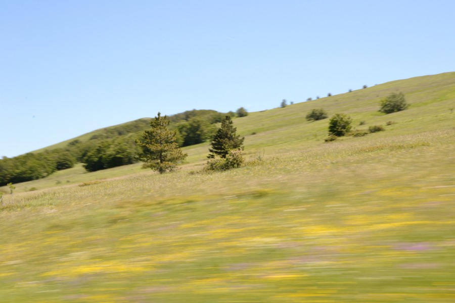 Ripresa in corsa in cui la velocità angolare provoca un mosso gradualmente distribuito in profondità. Se ci fossero un soggetto, una luce, un cielo, un qualcosa a dare un senso a questo effetto se ne potrebbe pure dire qualcosa. In mancanza di tutto ciò non rimane nulla.