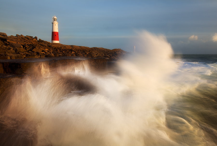 Foto realizzata a Portland nel Dorset, in una sera con un vento di una forza che, date le mie origine prealpine, non avevo mai visto. Da far fatica a stare in piedi. Al riparo, si fa per dire, di una roccia protesa nel mare, sono rimasto, in compagnia di altri 3 landscapers inglesi, una decina di minuti per qualche scatto. Questa e' stata l'onda più grande.