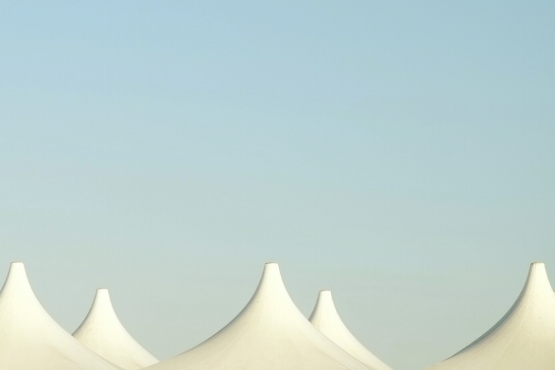 Un bel lavoro in cui queste cuspidi (che ignoro cosa siano) divengono un'astrazione, pure forme grafiche che ben si armonizzano con il vuoto cielo retrostante. Delicata e sobria la gamma tonale.