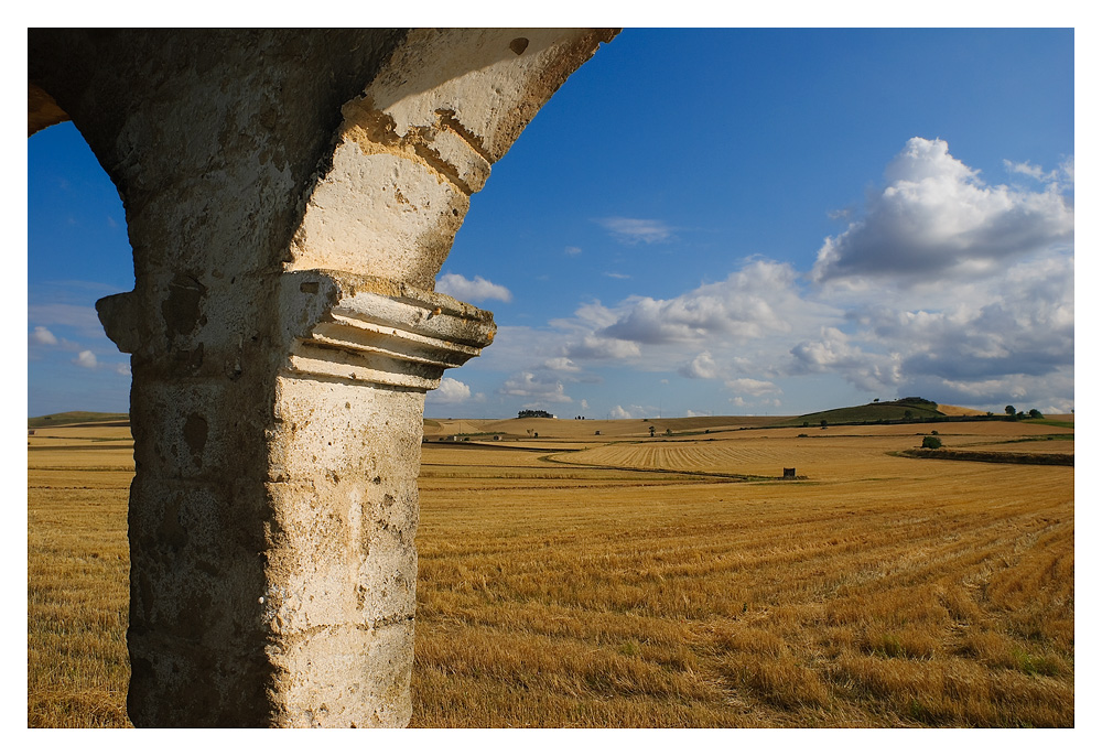 Una bella armonia tra le linee classiche dell'arco-capitello-colonna e le distese dei campi di grano. Ben composta, con una buona luce ed un'ottima nitidezza. Semplice ma efficace.