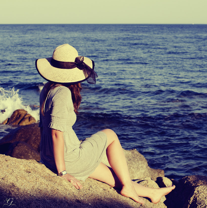 Un bel soggetto per una foto che fa pensare ad una vecchia diapositiva mal conservata nella quale il magenta comincia a prendere il sopravvento. Un pizzico di sovresposizione, che può risultare "filologica", sulla donna, in particolare sulle gambe. Alleggerendo un po' l'intensità del mare credo si potrebbe meglio equilibrare il tutto.